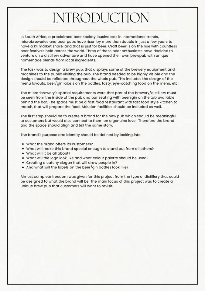 A unique brew pub that stands out from existing brew pubs needed to be designed. This brew pub focuses on making the users laugh and feel relaxed while they enjoy the gin that Nr.7ATE9 a.k.a the Pun pub. This brew pub loves its puns and tries to create an escape for users from their fasted paced lives.